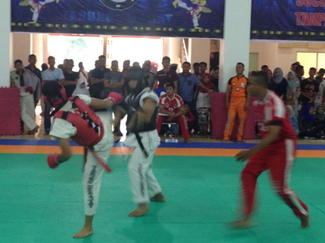 "Alhamdulillah 7 petarung kita besok masuk final, selain itu pada kategori seni gerak beregu kita juga berpeluang merebut emas, " ungkap Ketua Pengurus Kabupaten Tarung Derajat Bengkalis H. Mustafa Alwi, Senin (6/11/2017) malam.Â