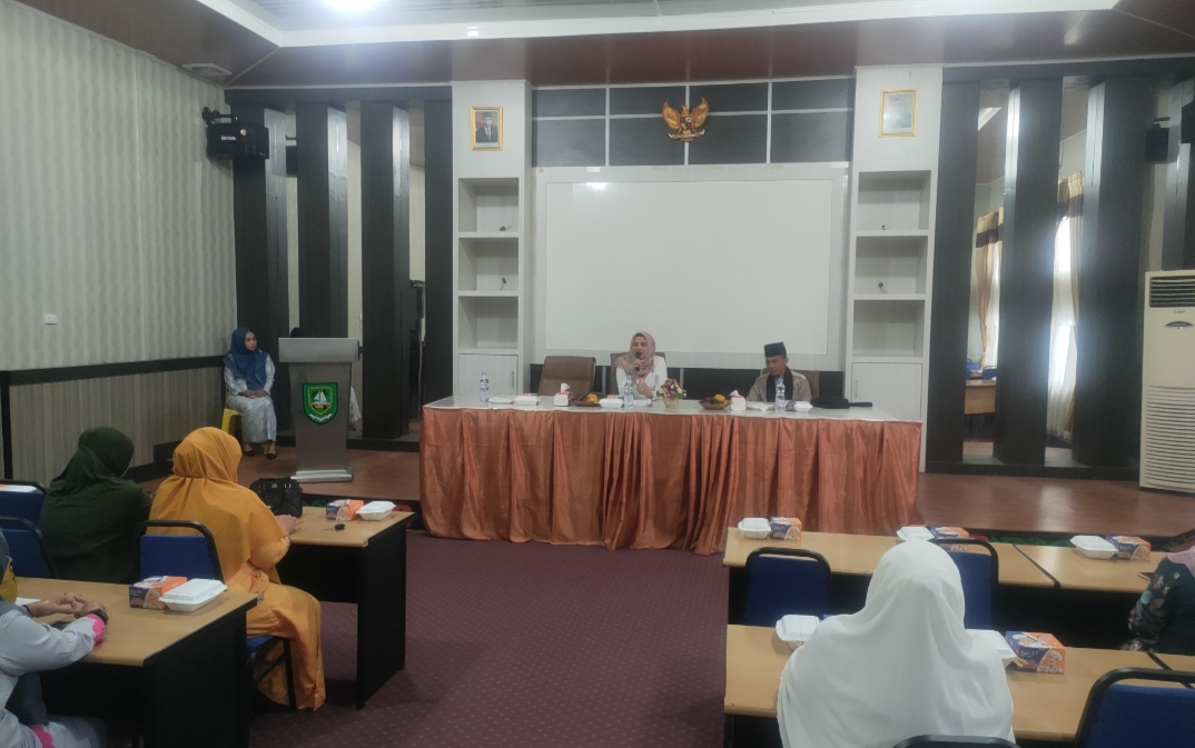 BENGKALIS - Dharma Wanita Persatuan (DWP) Dinas Perumahan Pemukiman dan Pertanahan (Disperkimnah) Kabupaten Bengkalis, Rabu (12/10/2022) menggelar peringatan maulid nabi Muhammad SAW, di aula Kantor Disperkimnah Bengkalis.