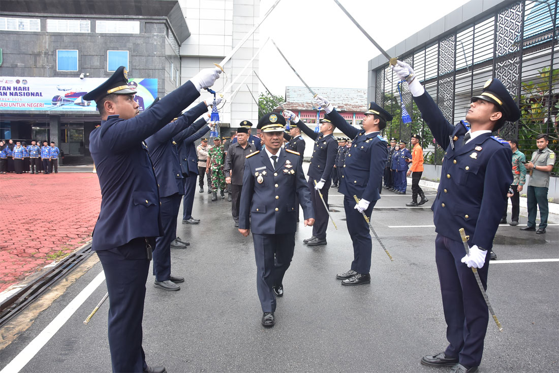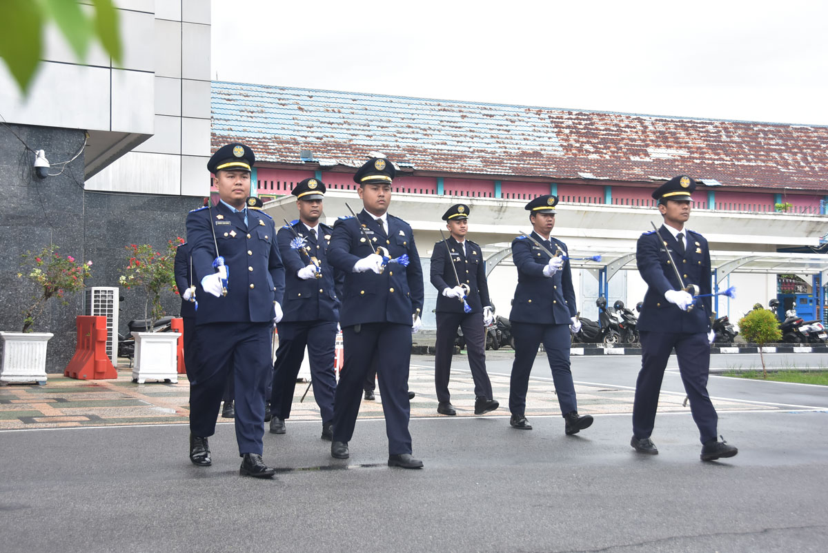 Kedatangan Wabup disambut prosesi jajar kehormatan pedang pora oleh para taruna perhubungan. Tradisi ini menghadirkan nuansa gagah dan sakral, menandai dimulainya upacara dengan penuh penghormatan.