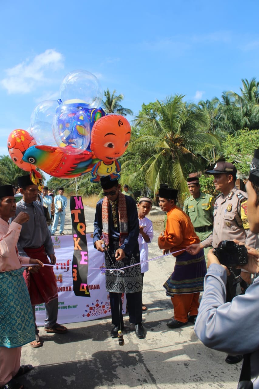 Selanjutnya, Kades Khairil memotong pita melepaskan balon terbang kelangit biru tenggayun, menandakan pawai taaruf resmi dilepas.