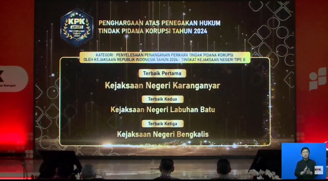 Tingkat Kejaksaan Negeri Tipe B dalam KPK Award Hakordia pada Penghargaan atas Penegakan Hukum Tindak Pidana Korupsi Tahun 2024.