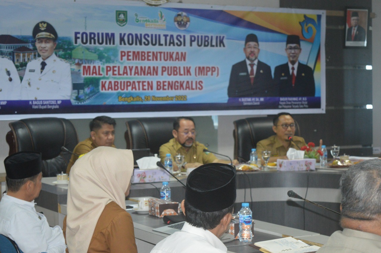 Keterangan Gambar : Sekda Bengkalis Bustami dan Kepala DPMPTSP Bengkalis Basuki saat pelaksanaan Forum Konsultasi Publik MPP
