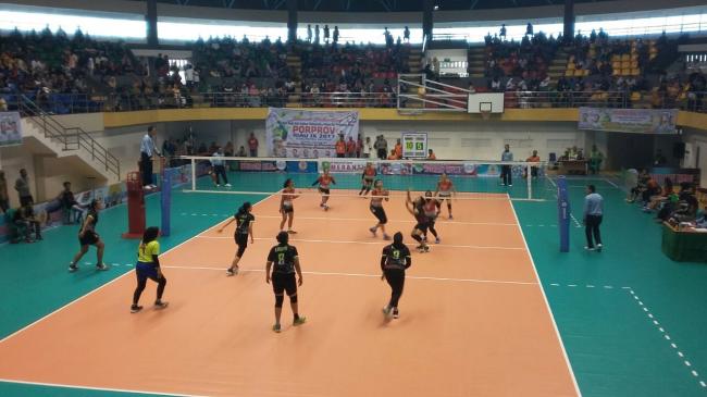 KAMPAR,– Keperkasaan Tim Voli Putri Bengkalis dirasakan oleh Tim Voli Putri Siak dalam babak perwmpat final grup Pekan Olahraga Provinsi (Porprov) IX, Senin (6/11/2017) sore di GOR Sprt Center Bangkinang.