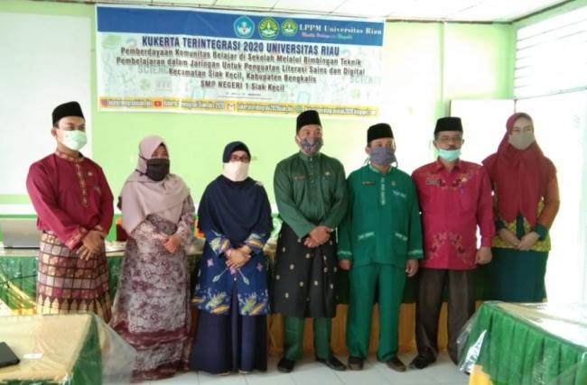 SIAKKECIL - Menyikapi proses belajar mengajar di tahun pelajaran 2020 / 2021 dalam masa pandemi Covid-19, kelompok Kuliah Kerja Nyata (Kukerta) Terintegrasi Universitas Riau (UNRI) menyelenggarakan Musyawarah Guru Mata Pelajaran (MGMP).