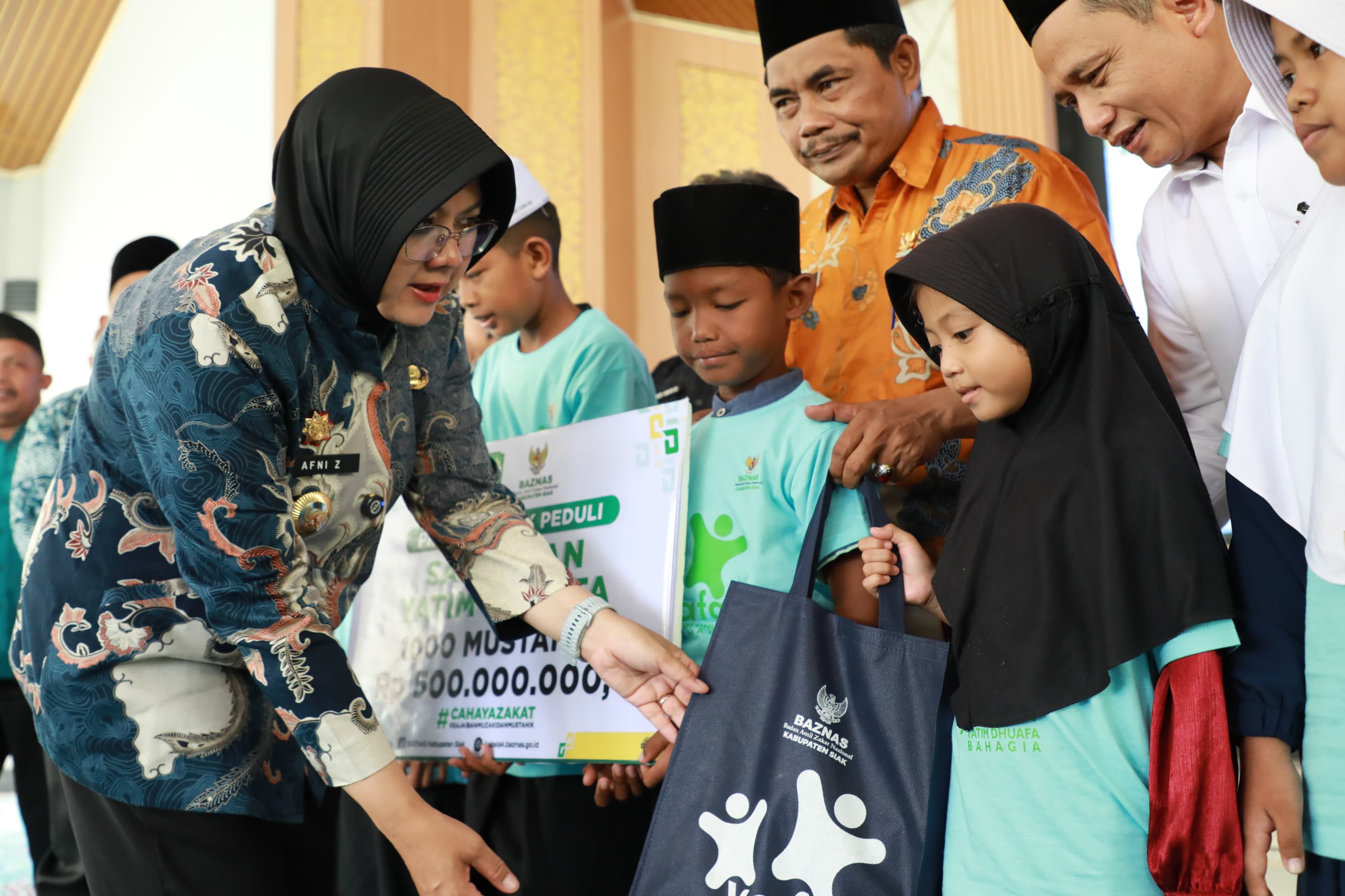 Bupati Siak, Afni Zulkifli, menyampaikan bahwa program ini merupakan kerja sama antara Dinas Sosial dan Baznas Kabupaten Siak, sebagai bentuk kepedulian pemerintah daerah terhadap anak-anak dari keluarga kurang mampu.