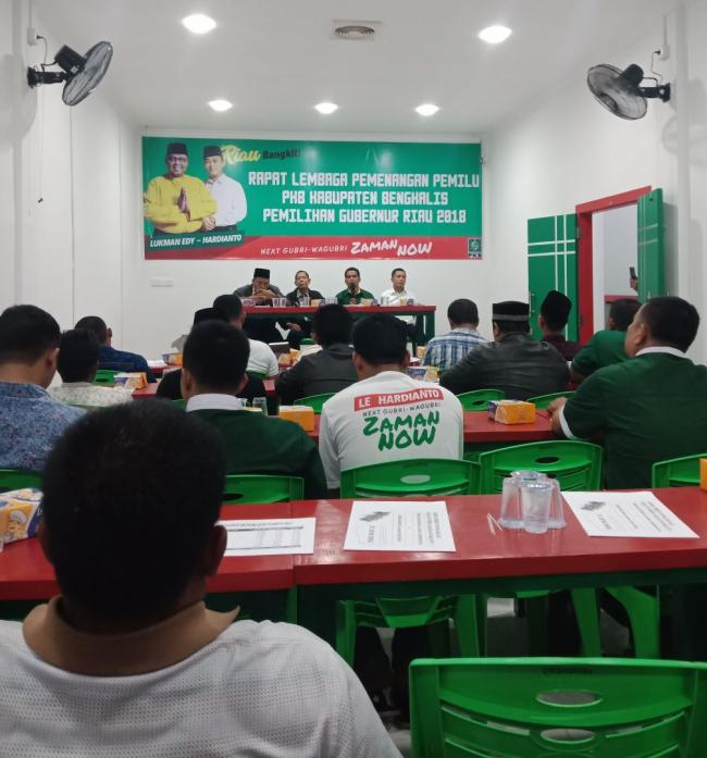 RIAUBERDAULAT.COM,BENGKALIS - Dewan Pimpinan Cabang Partai Kebangkitan Bangsa (DPC PKB) Kabupaten Bengkalis, Minggu (28/1/2018) malam menggelar rapat Lembaga Pemenangan Pemilu (LPP) untuk konsolidasi pemantapan pemenangan pasangan Lukman Edi - Hardianto pada Pilgubri 2018 ini.