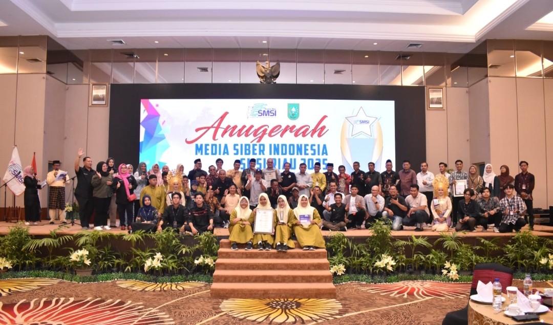 Pekanbaru - Perhelatan ajang Anugerah Media Siber Indonesia yang ditaja Serikat Media Siber Indonesia (SMSI) Provinsi Riau sukses digelar di Grand Ballroom Mutiara Merdeka Hotel Pekanbaru, Jumat (31/10/2025).
