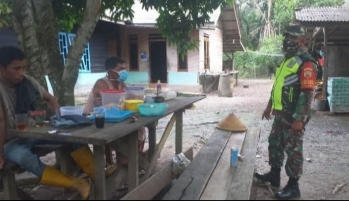 SIAK KECIL- Babinsa Koramil 07/Bukit Batu Kabupaten Bengkalis melaksanakan sosialisasi terkait tentang wabah Covid-19 di Desa Muara Dua Kecamatan Siak Kecil Pukul, 08:00 WIB,Kamis (03/06/2021).