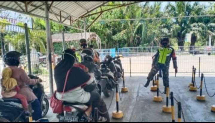 BUKIT BATU- Babinsa Koramil 07/Bukit Batu Kabupaten Bengkalis melaksanakan sosialisasi terkait tentang wabah Covid-19 di Pelabuhan roro Sungai Selari Kecamatam Bukit Batu Pukul, 08:00 WIB Sabtu (19/06/2021).