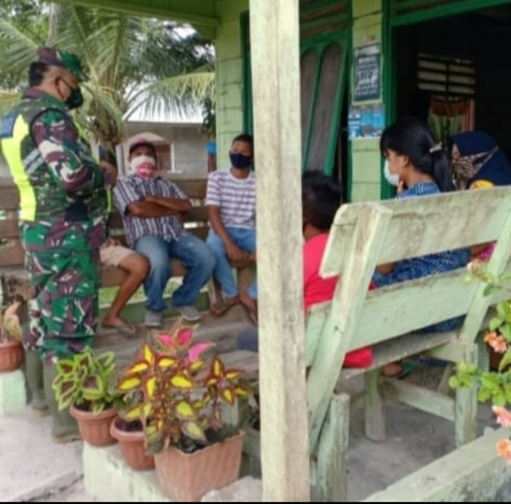 BANDAR LAKSAMANA- Babinsa Koramil 07/Bukit Batu Kabupaten Bengkalis melaksanakan sosialisasi terkait tentang wabah Covid-19 di Desa Bukit Kerikil Kecamatan Bandar Laksamana Pukul, 08:00 WIB Rabu (02/06/2021).