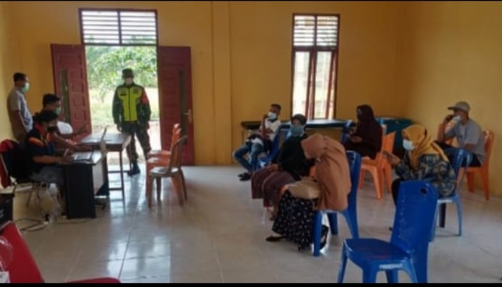 SIAK KECIL- Babinsa Koramil 07/Bukit Batu Kabupaten Bengkalis melaksanakan sosialisasi terkait tentang wabah Covid-19 di Desa Lubuk Gaung Kecamatan Siak Kecil Pukul, 08:00 WIB,Jumat (21/05/2021).