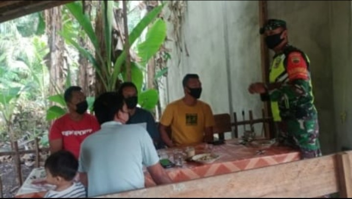 SIAK KECIL- Babinsa Koramil 07/Bukit Batu Kabupaten Bengkalis melaksanakan sosialisasi terkait tentang wabah Covid-19 di Desa Koto Raja Kecamatan Siak Kecil Pukul, 08:00 WIB,Rabu (14/07/2021).