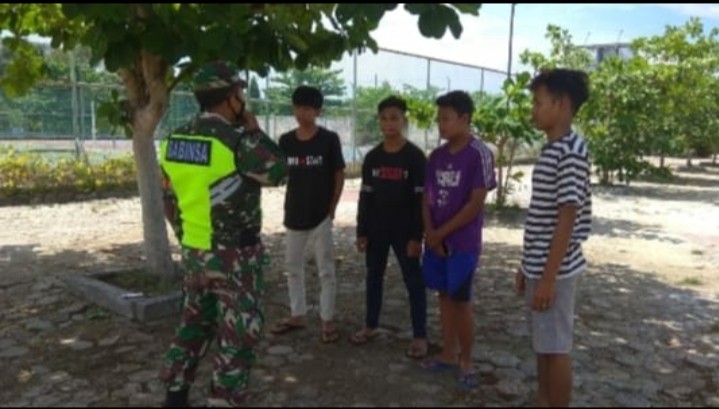BUKITBATU- Babinsa Koramil 07/Bukit Batu Kabupaten Bengkalis melaksanakan sosialisasi terkait tentang wabah Covid-19 di Desa Sungai Selari Kecamatan Bukit Batu Pukul, 08:00 WIB,Senin (02/08/2021).