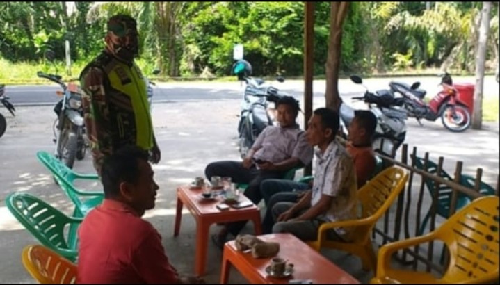 SIAK KECIL-Babinsa Koramil 07/Bukit Batu Kabupaten Bengkalis melaksanakan sosialisasi terkait tentang wabah Covid-19 di Sungai Linau Kecamatam Siak Kecil Pukul, 08:00 WIB,Senin (08/03/2021).