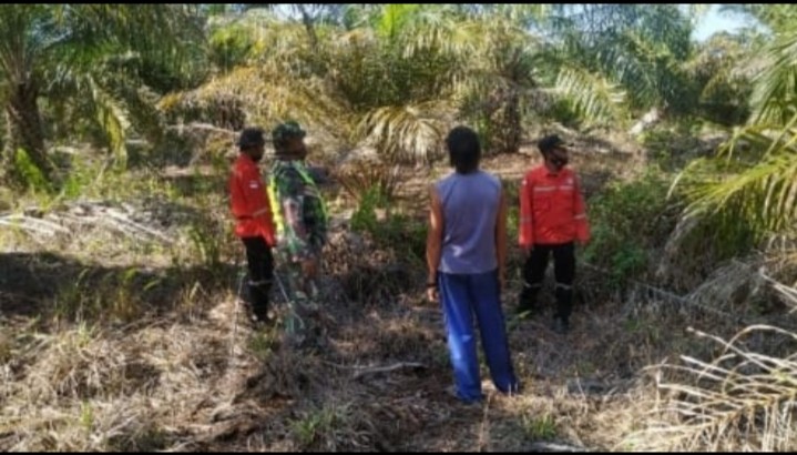BANDAR LAKSAMANA-Dalam rangka pencegahan Kebakaran Hutan dan Lahan (Karhutla), Babinsa Koramil 07/Bukit Batu Kabupaten Bengkalis melaksanakan Patroli di Desa Sepahat Kecamatan Bandar Laksamana Senin (05/07/2021).