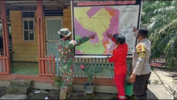 SIAK KECIL-Dalam rangka pencegahan Kebakaran Hutan dan Lahan (Karhutla), Babinsa Koramil 07/Bukit Batu Kabupaten Bengkalis melaksanakan Patroli di Desa Bandar Jaya Kecamatan Siak Kecil Jumat (18/06/2021).