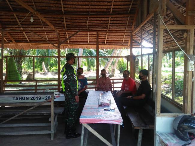 SIAK KECIL- Babinsa Koramil 07/Bukit Batu Kabupaten Bengkalis melaksanakan sosialisasi terkait tentang wabah Covid-19 di Desa Sungai Siput Kecamatam Siak Kecil Pukul, 10:00 WIB, Rabu (27/05/2020).