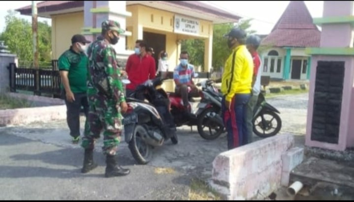 SIAK KECIL-Babinsa Koramil 07/Bukit Batu Kabupaten Bengkalis melaksanakan sosialisasi terkait tentang wabah Covid-19 di Desa Liang Banir Kecamatam Siak Kecil Pukul, 08:00 WIB,Rabu (10/03/2021).