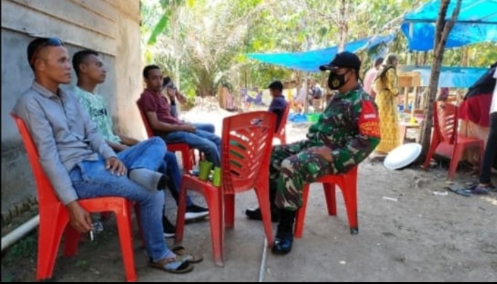 BANDAR LAKSAMANA- Babinsa Koramil 07/Bukit Batu Kabupaten Bengkalis melaksanakan sosialisasi terkait tentang wabah Covid-19 di Desa Sepahat Kecamatan Bandar Laksamana Pukul, 08:00 WIB Minggu (07/03/2021).