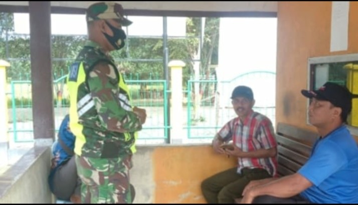 SIAK KECIL-Babinsa Koramil 07/Bukit Batu Kabupaten Bengkalis melaksanakan sosialisasi terkait tentang wabah Covid-19 di Desa Sepotong Kecamatan Siak Kecil Pukul, 08:00 WIB,Sabtu (03/04/2021).