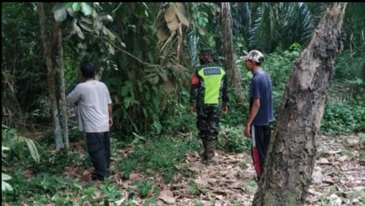 BANDAR LAKSAMANA-Dalam rangka pencegahan Kebakaran Hutan dan Lahan (Karhutla), Babinsa Koramil 07/Bukit Batu Kabupaten Bengkalis melaksanakan Patroli di Desa Tenggayun Kecamatan Bandar Laksamana Senin (03/05/2021).