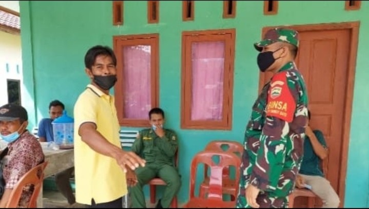 BANDAR LAKSAMANA- Babinsa Koramil 07/Bukit Batu Kabupaten Bengkalis melaksanakan sosialisasi terkait tentang wabah Covid-19 di Desa Temiang Kecamatan Bandar Laksamana Pukul, 08:00 WIB Selasa (24/08/2021).