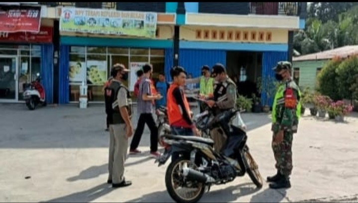 BUKIT BATU-Babinsa Koramil 07/Bukit Batu Kabupaten Bengkalis melaksanakan sosialisasi terkait tentang wabah Covid-19 di Kelurahan Sungai pakning Kecamatan Bukit Batu Pukul, 08:00 WIB.Minggu (14/03/2021).