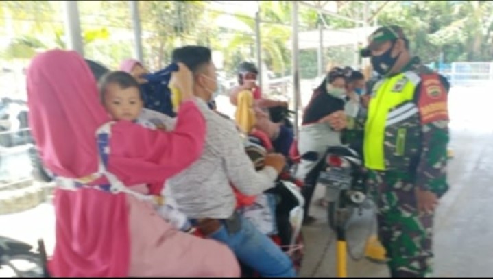 BUKIT BATU- Babinsa Koramil 07/Bukit Batu Kabupaten Bengkalis melaksanakan sosialisasi terkait tentang wabah Covid-19 di Pelabuhan roro Sungai Selari Kecamatan Bukit Batu Pukul, 08:00 WIB Rabu (18/08/2021).