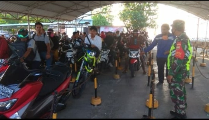 BUKIT BATU-Babinsa Koramil 07/Bukit Batu Kabupaten Bengkalis melaksanakan sosialisasi terkait tentang wabah Covid-19 di Pelabuhan roro Sungai Selari Kecamatam Bukit Batu Pukul, 08:00 WIB Sabtu (17/04/2021).