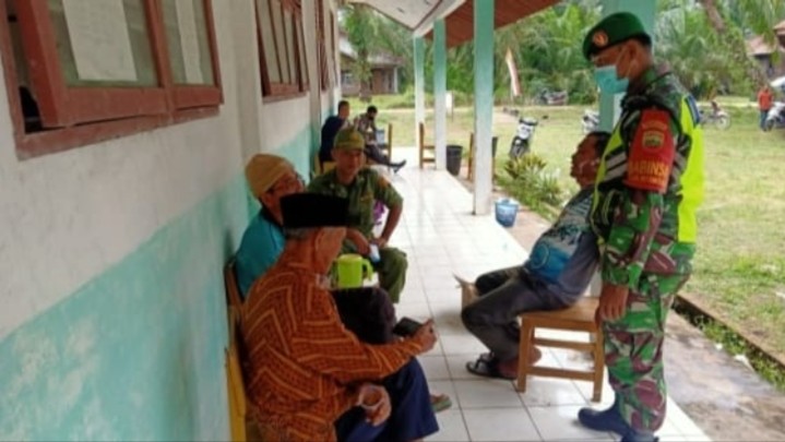SIAK KECIL-Babinsa Koramil 07/Bukit Batu Kabupaten Bengkalis melaksanakan sosialisasi terkait tentang wabah Covid-19 di Desa Sepotong Kecamatan Siak Kecil Pukul, 08:00 WIB,Selasa (30/03/2021).