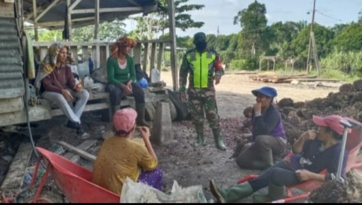 SIAK KECIL-Babinsa Koramil 07/Bukit Batu Kabupaten Bengkalis melaksanakan sosialisasi terkait tentang wabah Covid-19 di Desa Tanjung Damai Kecamatam Siak Kecil Pukul, 08:00 WIB,Kamis (22/04/2021).