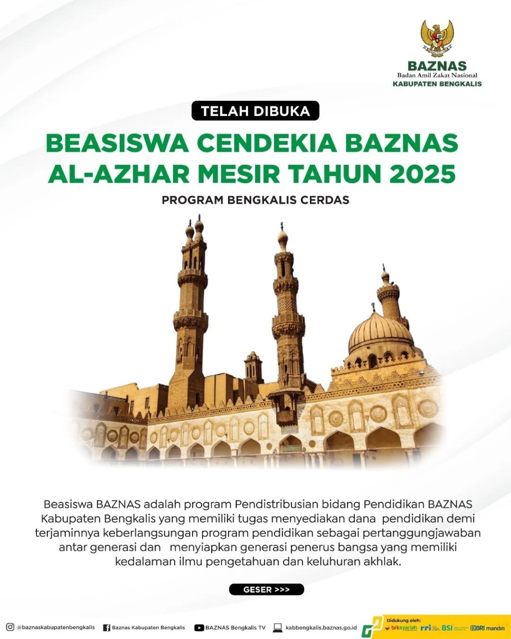 Keterangan Gambar : BAZNAS Bengkalis Buka Peluang Studi ke Al-Azhar Mesir Lewat Beasiswa Cendekia 2025