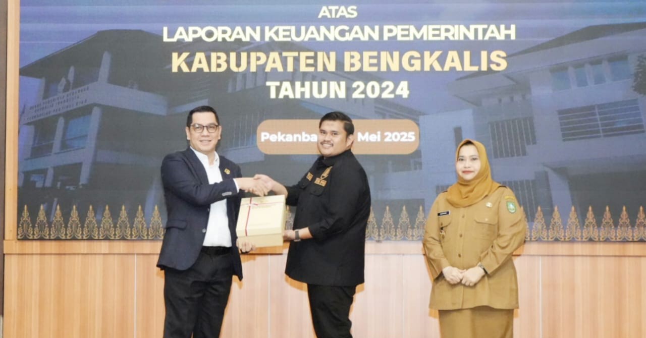 Pekanbaru – Badan Pemeriksa Keuangan (BPK) Perwakilan Provinsi Riau menyerahkan Laporan Hasil Pemeriksaan (LHP) atas Laporan Keuangan Pemerintah Daerah (LKPD) di Provinsi Riau Tahun 2024, dan Pemerintah Kabupaten Bengkalis kembali mendapat prestasi membanggakan dengan berhasil meraih opini Wajar Tanpa Pengecualian (WTP) untuk ke-12 kalinya secara berturut-turut yang diterima oleh Bupati Kasmarni.