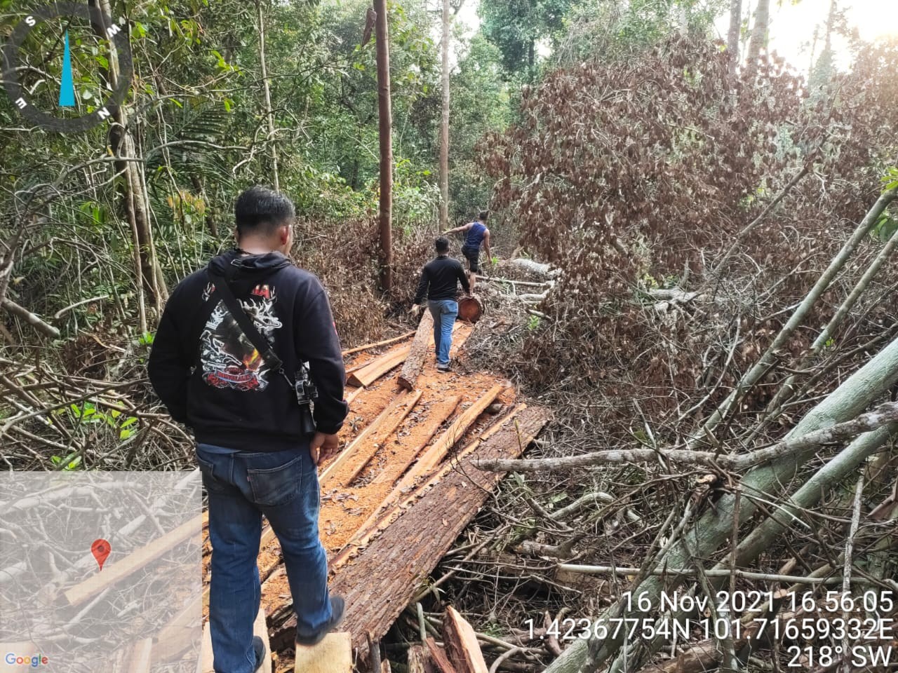 "Di lokasi kita temukan bekas aktivitas ilegal loging, diperkirakan dua hari sebelumnya mereka masih beroperasi. Di TKP (Tempat Kejadian Peristiwa - Red) terdapat barang bukti dua sepeda pengangkut dan kayu - kayu bekas dibelah menjadi papan," tambahnya.