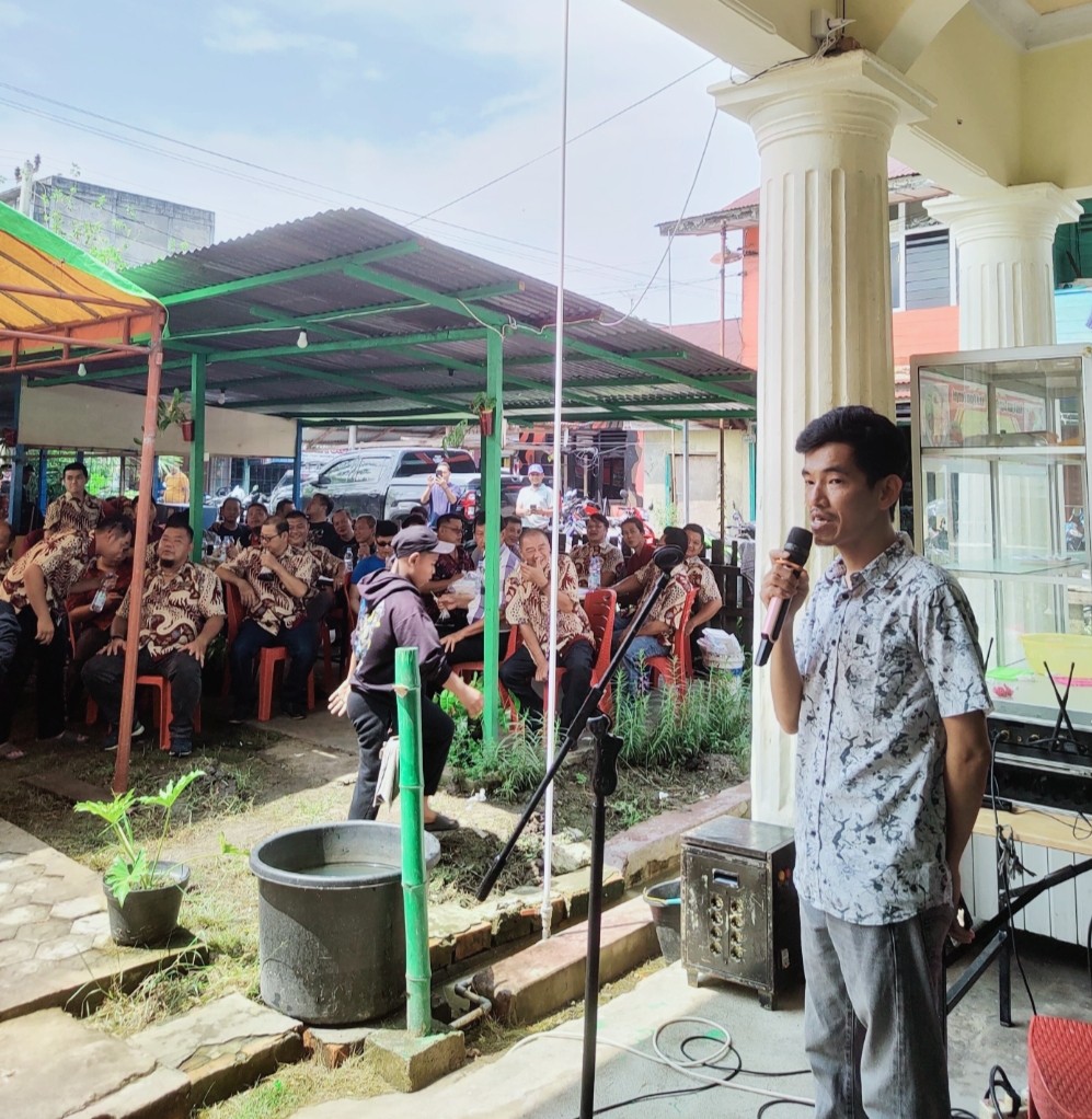 Keterangan Gambar : Aslindo Novianto alias Bon Eng saat menyampaikan pernyataan sikap mendukung KBS untuk Pilkada Bengkalis 2024