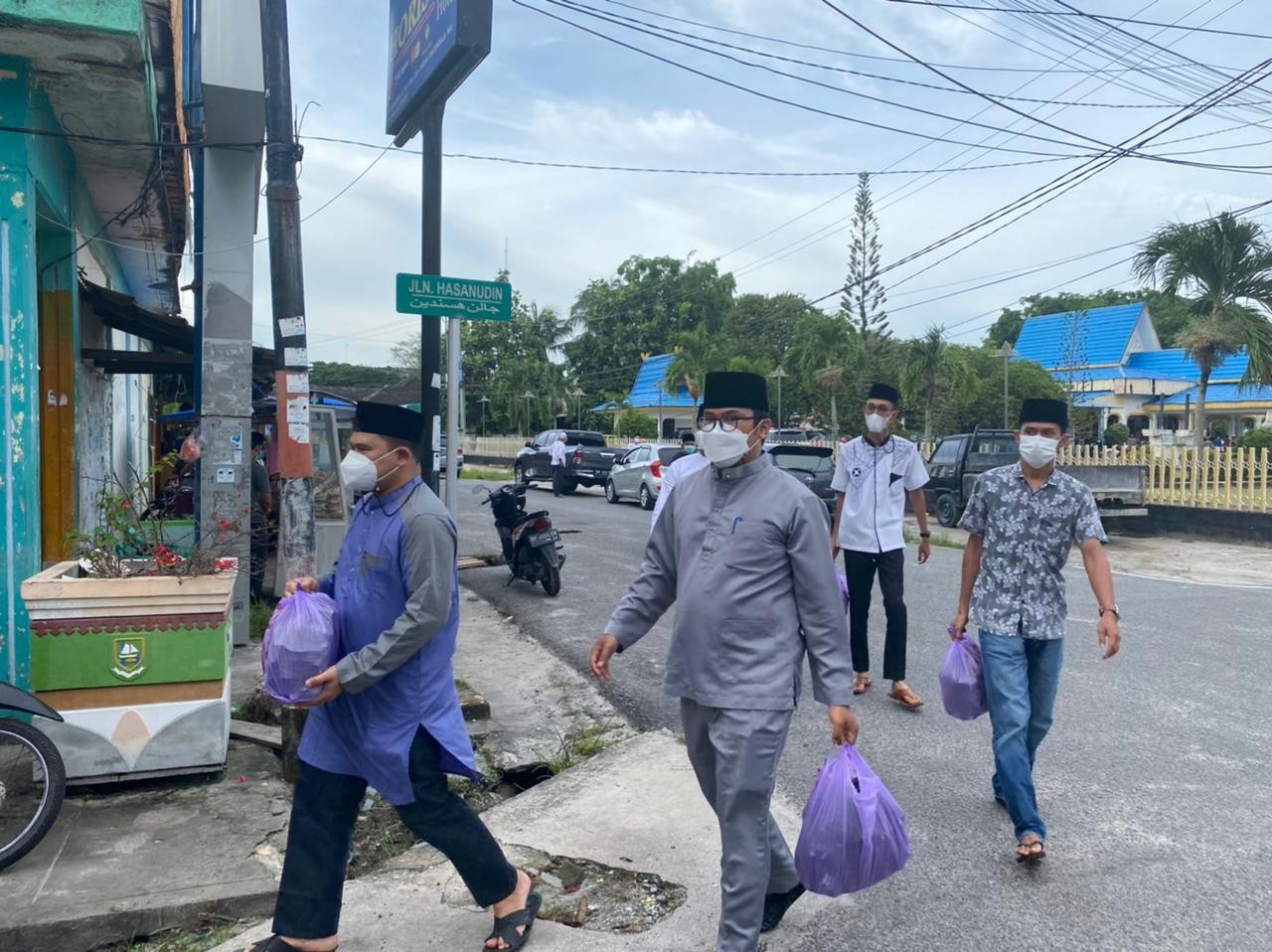 BENGKALIS -Himpunan Pengusaha Muda Indonesia (HIPMI) Bengkalis memberikan bantuan sembako kepada masyarakat sekitaran Kecamatan Bengkalis, Jum'at (7/5/2021). Selain warga, tukang becak pun tak luput dari pembagian sembako.