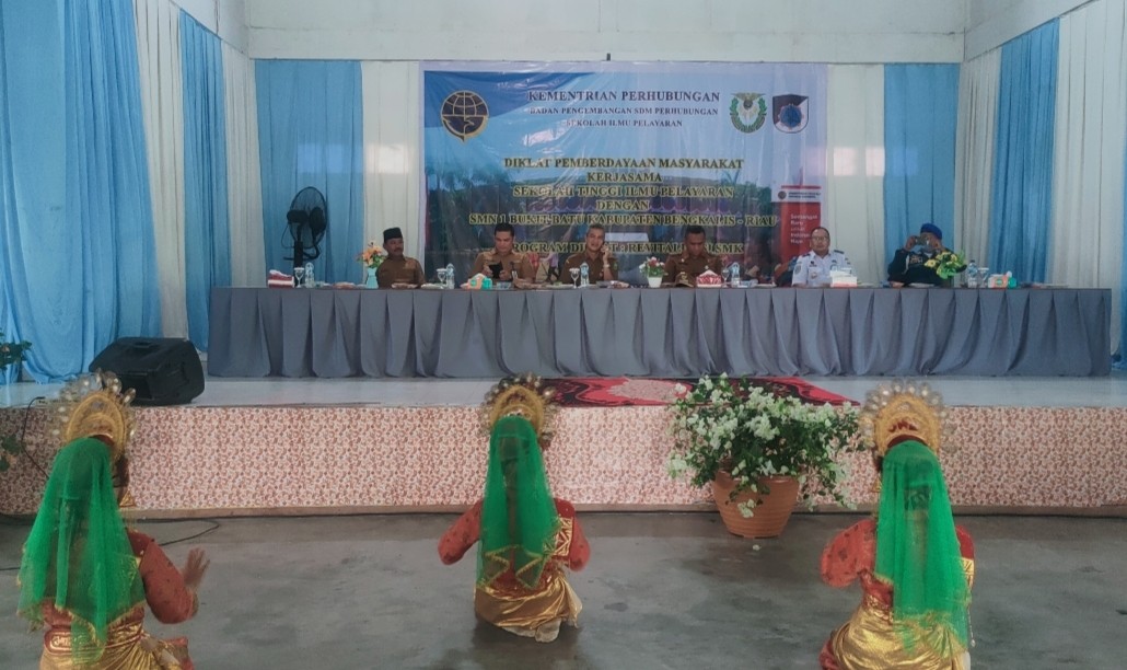 SUNGAIPAKNING - Kementerian Perhubungan melalui Badan Pengembangan Sumber Daya Manusia (BPSDM) Perhubungan menggelar diklat pemberdayaan masyarakat bekerjasama dengan Sekolah Tinggi Ilmu Pelayaran (STIP) dan SMKN 1 Bukit Batu pelayaran, pada Senin (29/82022) di Gedung Serba Guna Bujang Kelana Sungai Pakning Kecamatan Bukit Batu Bengkalis.