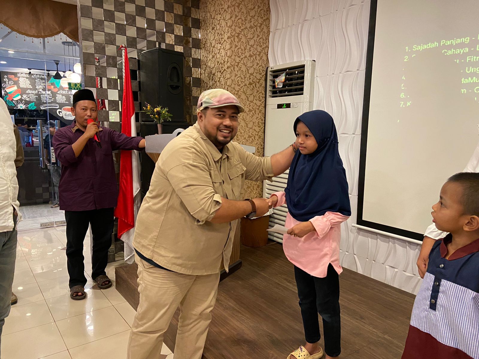 Keterangan Gambar : Ketua JMSI Kabupaten Bengkalis Bambang Gusfryadi menyerahkan santunan kepada Anak yatim dan kaum Dhuafa