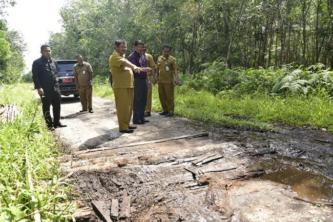 Keterangan Gambar : Bupati Bengkalis Amril Mukminin memantau salah satu titik jalan yang rusak di Bengkalis