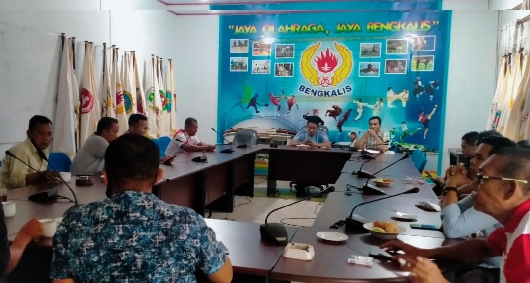 Keterangan Gambar : Rapat teknis pengurus KONI Bengkalis membahas rencana penyerahan bonus PON Papua, Selasa (30/11) mendatang.