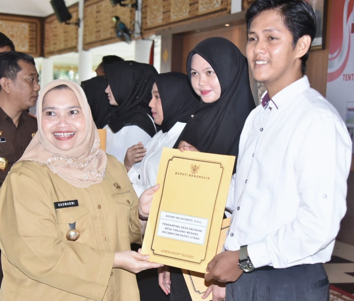 SK tersebut diserahkan Bupati Bengkalis Kasmarni secara simbolis kepada tenaga Pendamping Desa/Kelurahan perwakilan dari masing-masing kecamatan Kabupaten Bengkalis.