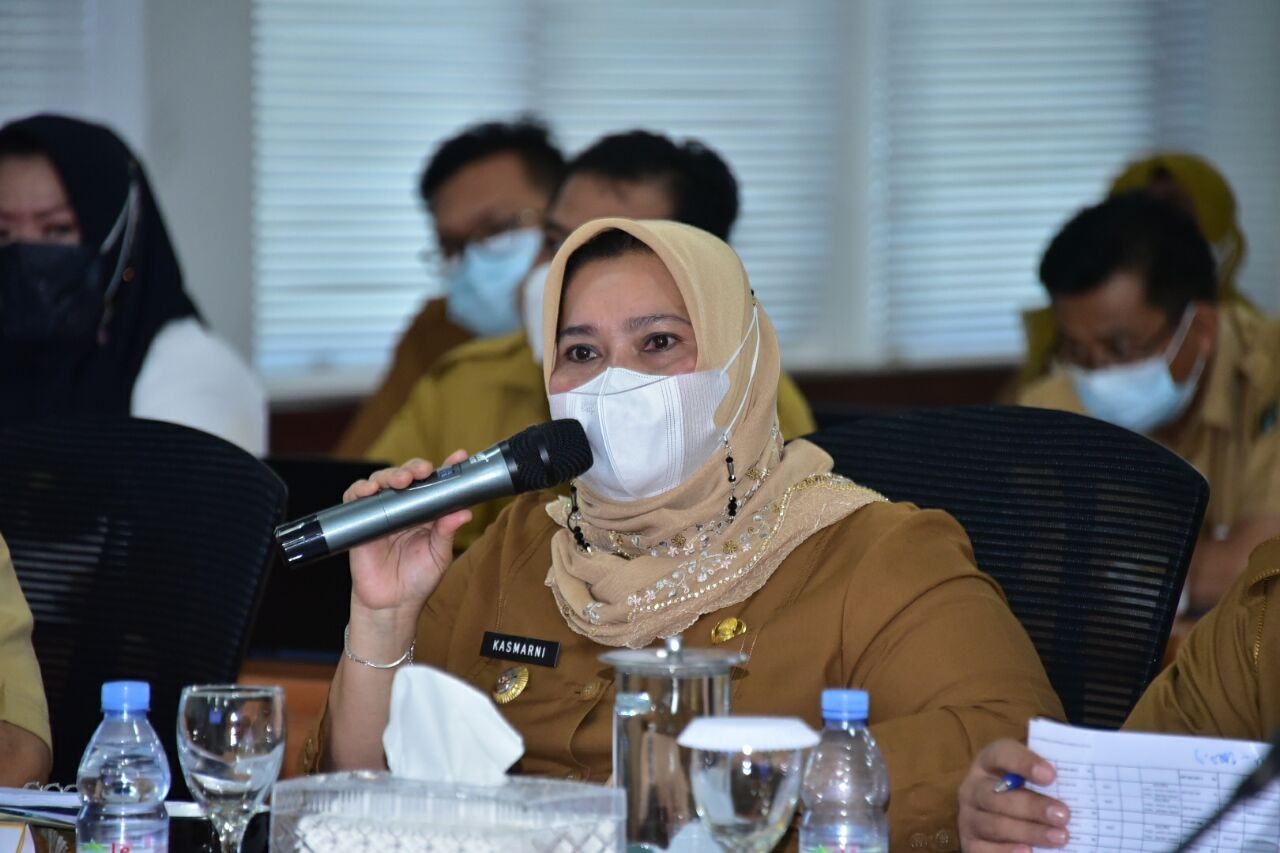 Bupati Bengkalis Kasmarni memberikan arahan kepada seluruh Kepala Perangkat Daerah untuk dapat memperpanjang kegiatan yang ada pada Rencana Kerja (Renja) di tiap Perangkat Daerah (PD) untuk tahun 2022, Senin (24/5), di Ruang Rapat Zahari Kantor Bappeda Kabupaten Bengkalis.