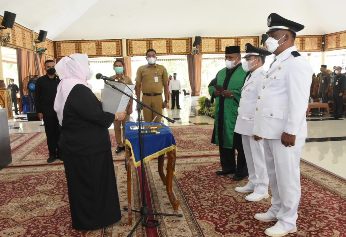 Keterangan Gambar : Bupati Bengkalis kala melantik Kepala Desa Pedekik dan Sejangat, Selasa, 23 November 2021 di Pendopo Wisma Daerah.