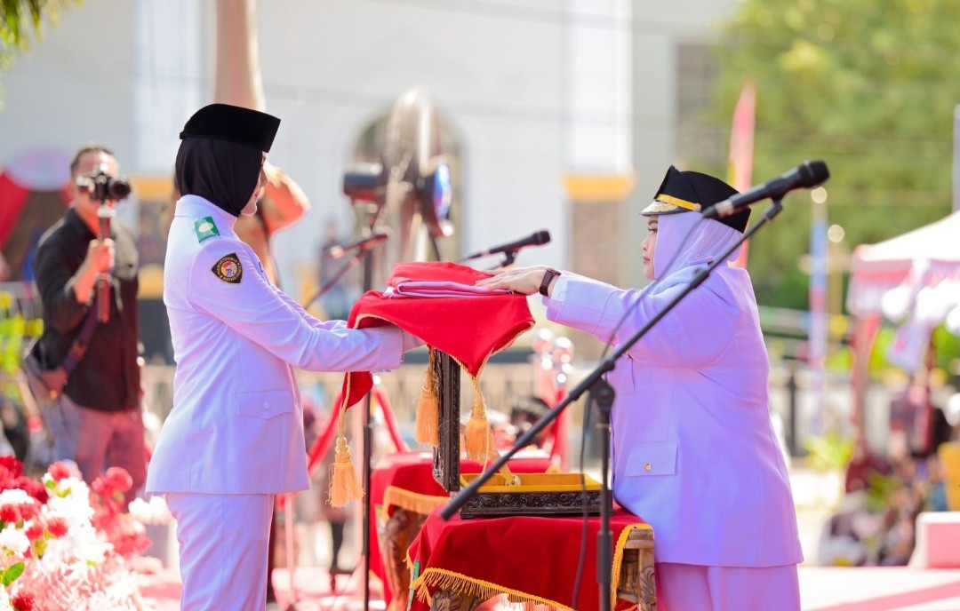 Keterangan Gambar : Bupati Bengkalis Kasmarni menjadi Inspektur Upacara 17 Agustus 2025 di Lapangan Tugu Kota Bengkalis