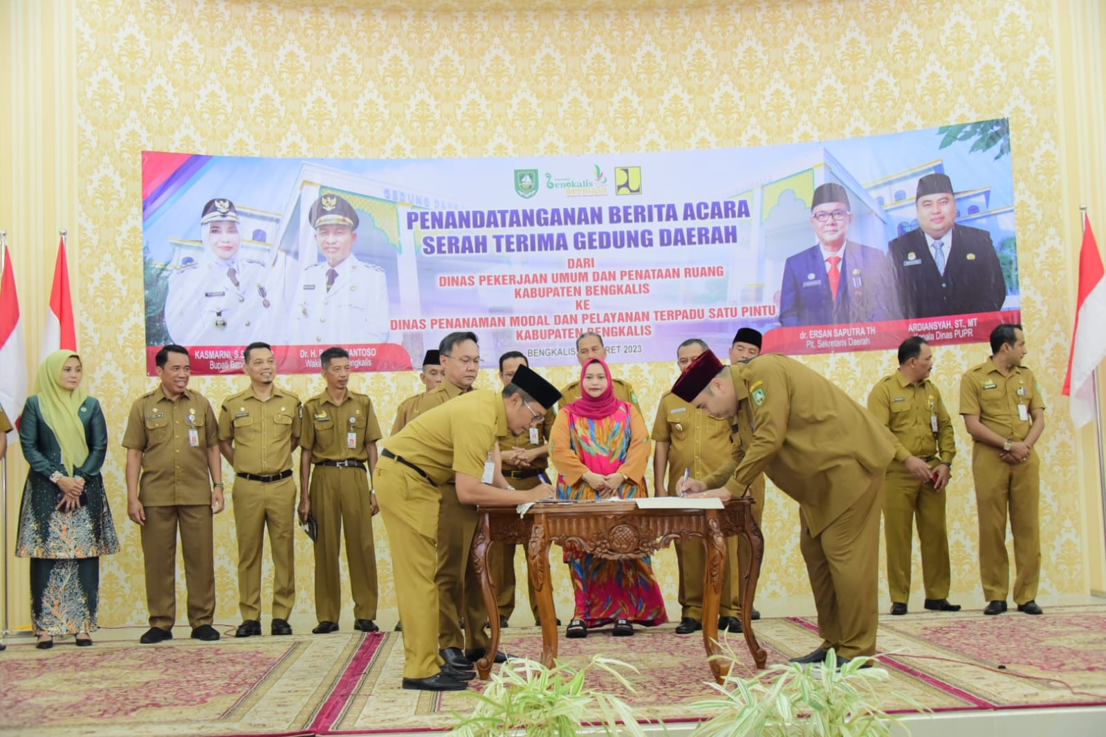 Selasa, 28 Maret 2023 dilakukan serah terima gedung MPP dari Dinas PUPR kepada Dinas Penanaman Modal dan Pelayanan Terpadu Satu Pintu (DPMPTSP) disaksikan Bupati Bengkalis Kasamarni dan Wakil Bupati Bagus Santoso.