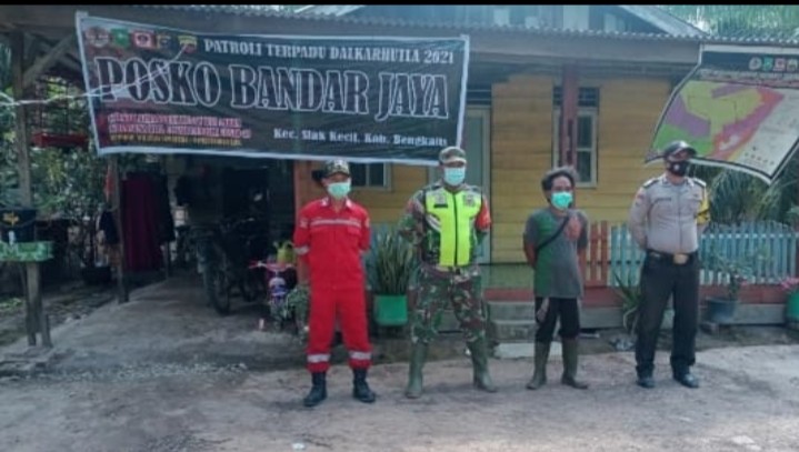 SIAK KECIL-Dalam rangka pencegahan Kebakaran Hutan dan Lahan (Karhutla), Babinsa Koramil 07/Bukit Batu Kabupaten Bengkalis melaksanakan Patroli di Desa Bandar Jaya Kecamatan Siak Kecil Senin (09/08/2021).
