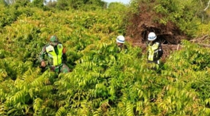BUKIT BATU- Dalam rangka pencegahan Kebakaran Hutan dan Lahan (Karhutla), Babinsa Koramil 07/Bukit Batu Kabupaten Bengkalis melaksanakan Patroli di Kelurahan Sungai Pakning Kecamatan Bukit Batu,Jumat (16/04/2021).