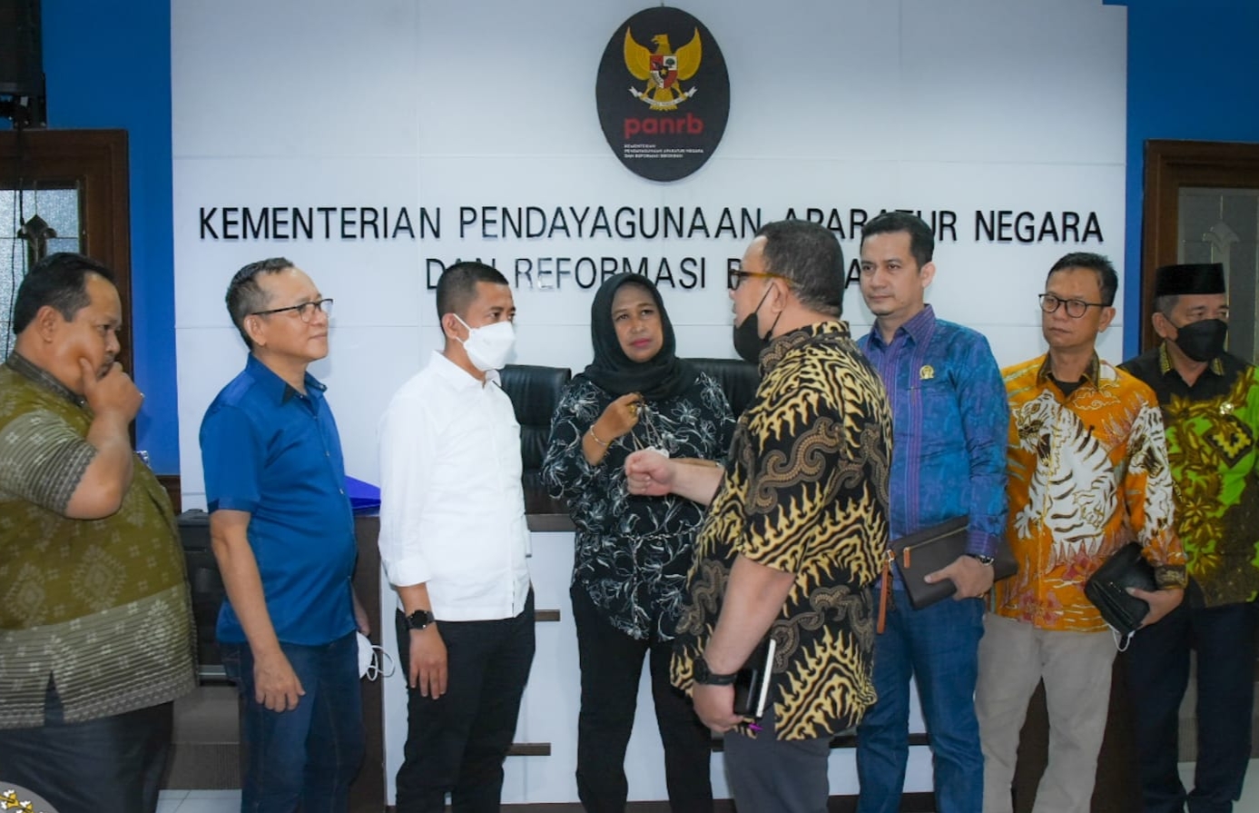 JAKARTA - Anggota Komisi I dan IV datangi Gedung Kementerian Pemberdayaan Aparatur Negara Reformasi Birokrasi (Kemenpanrb) Republik Indonesia di Jakarta Pada Hari Kamis (19/10/2022).