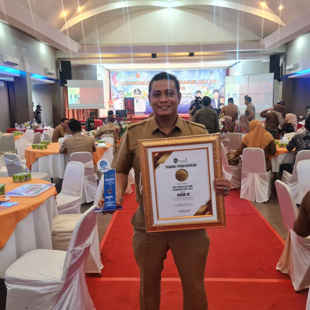 BENGKALIS- Dinas Diskominfotik Kabupaten Bengkalis menggelar penganugerahan Bengkalis Transparansi Award (BTA) Tahun 2022, Desa Pangkalan Jambi Kecamatan Bukit Batu meraih juara III.