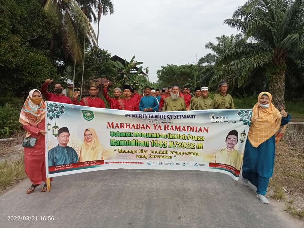 BANDARLAKSAMANA - Pemerintah Desa Sepahat Kecamatan Bandar Laksamana melaksanakan kegiatan pawai semarak menyambut bulan suci Ramadhan 1443 Hijriyah yang di laksanakan di Desa Sepahat, Kamis (31/3/2022).